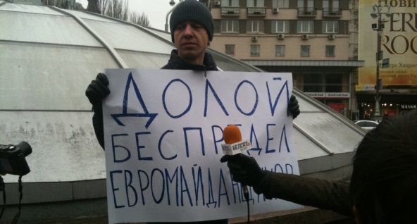 Разом з тим, у призначений їм час на Бессарабську площу не прийшов жоден городянин, крім самого Проценко. Активіст розгорнув плакат з написом "Геть свавілля евромайданщиков" і відповів на запитання численних журналістів, що прийшли на освітлення суботника.