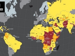 Усі держави в рейтингу розбиті на чотири колірні групи: 1. Червоний колір — критичний рівень ризиків; 2. Жовтогарячий — небезпечний рівень ризиків; 3. Жовтий — стабільні держави; 4. Зелений — найбільш стабільні держави. Україна разом з Росією, Білоруссю й Балканами перебуває в другій жовтогарячій групі. А от сусідня Польща вже в жовтій групі.