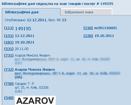 Згідно з документом, свідоцтво на володіння знаком Азаров отримав 12 грудня 2011 року вже будучи прем’єром.
