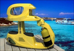 Російська компанія «Aqua Star» завершила розробку двомісного підводного мотоцикла. Модель, за словами розробників, може розвертатися практично на місці. Скло в апарата плоске і за рахунок обдування не запотіває. Мотоцикл забезпечує хорошу видимість, всередині легко дихати. До того ж він простий в керуванні. Запасу повітря у нього вистачає на 40 хвилин, а швидкість пересування складає 7 км/год. Двомісний підводний мотоцикл здатний опускатися на глибину до 20 м, вага моделі — 80 кг. Пілот і пасажир можуть спілкуватися між собою, що важливо під час занурення. У перспективі компанії — створення багатомісних туристичних апаратів.