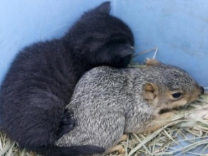 Киця Джинглс, яка недавно народила кошенят, замінила матір маленькому білченяті, що впало з дерева. Дитинча росте разом з потомством кішки - спить, їсть і грається разом з кошенятами.