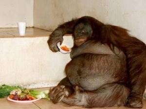 Співробітники британського центру порятунку тварин Monkey World, розташованого в Дорсеті, склали програму здорового харчування для самки орангутанга по кличці Ошин. Вага тварини перевищує 98 кілограмів.