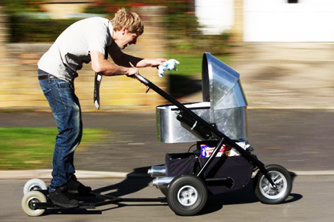 Пересічні молоді татусі гуляють із малюками в котромусь із тихих міських парків на швидкості, що не перевищує 5 км за годину. Та 33-річний британець Колін Фурз приробив до візка свого сина двигун об’ємом 125 см3 і звуком вихлопу розполохує все місто.