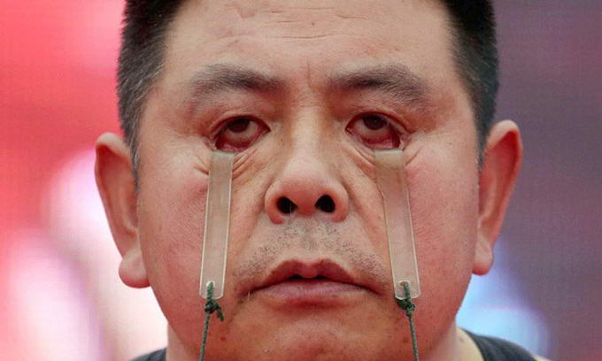 42-річний виробник феєрверків Ван Сяньсян з провінції Хунань, Китай, вміє утримувати тяжкості одними лише століттями. Журналісти застали виступ чоловіка на провінційному фестивалі в місті Люян - він піднімав повіками два відра з водою загальною вагою 4 кг.