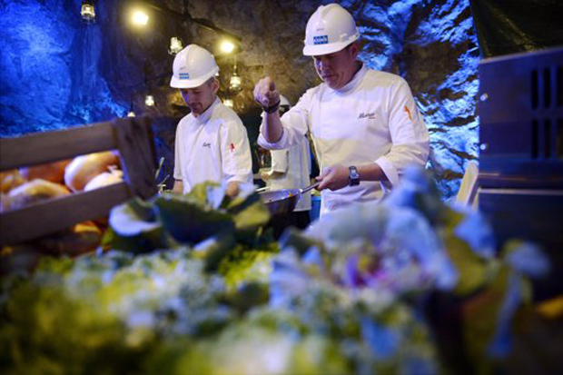 Новий ресторан, який відкрився в південному фінському місті Лохья, безумовно, порадує тих, кому подобається вечеря в якомусь екзотичному місці. Місто розташоване за 60 кілометрів на північний схід від столиці країни, але не в цьому суть. Ресторан Muru був створений на глибині 80 метрів під землею, в одній з гілок колишньої вапнякової шахти Tytyri. Підземний банкет обійдеться відвідувачам в круглу суму, оскільки ціни тут починаються від 150 доларів за місце. Зате гурмани вже точно не будуть ображені після того, як поласують копченої ряпушки (вид риби, яка поширена в Північній Європі) в лимонному маслі, філе смаженої телятини і стейком в квітках акції, пише mirfactov.com
