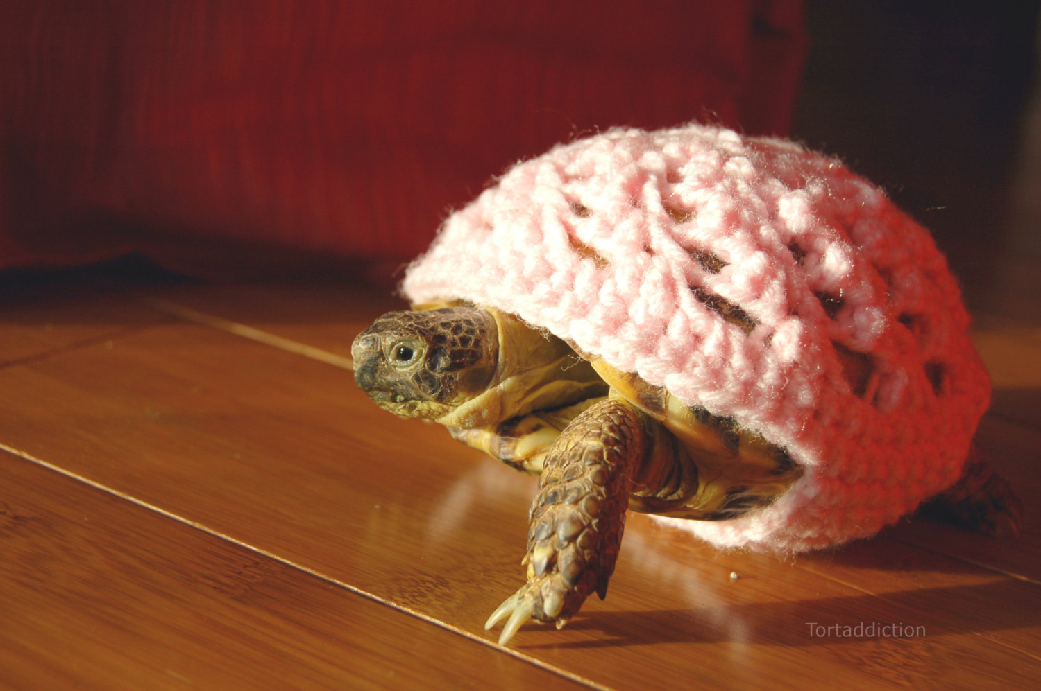 Тому рукодільниця Кейті Бредлі створила для неквапних прогулянок рептилій за межами тераріуму спеціальну колекцію яскравих в’язаних «светрів», які вдягаються на панцир і чудово виділяються на тлі рослинності.
