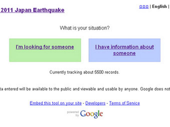 Компанія Google запустила спеціальний модуль для одержання інформації про людей, які могли постраждати в результаті землетрусу в Японії.