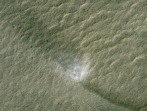 Американське космічне агентство виклало на своєму сайті нові фотографії марсіанських пейзажів, передані на Землю зондом Mars Reconnaissance Orbiter. Зокрема, апарат сфотографував кратер Вікторія і невелику пилову бурю. Про це повідомляється в прес-релізі на сайті агентства. Новий малюнок кратера Вікторія було виконана під кутом. За словами фахівців, вид на знімку найбільше нагадує вигляд з літака. На фото можна розгледіти структури на схилах кратера, а також сліди марсоходу Opportunity, що більше двох років вивчав даний кратер. Крім цього зонду вдалося сфотографувати смерч, що рухається поверхнею Марса. На знімку добре видно сліди воронки, а також тінь від неї. Смерчі утворюються в результаті того, що нагріте марсіанське повітря у поверхні піднімається вгору і закручується у воронку, пояснили експерти. За їхніми словами, марсохід Spirit за час перебування на Марсі сфотографував близько 650 таких буревіїв. Всі нові фотографії були зроблені за допомогою камери HiRISE (високого дозволу Imaging Science). Вона забезпечує безпрецедентну якість фотознімків завдяки унікальній оптиці - фактично камера оснащена півметровим телескопом. HiRISE здатна розглянути об'єкти розміром не менше 30 сантиметрів з висоти понад 300 кілометрів. Нові знімки стали першими фотографіями Mars Reconnaissance Orbiter, опублікованими після недавнього збою. Зовсім нещодавно MRO несподівано перемкнувся на запасний комп'ютер. При цьому частина даних про стан системи виявилася втраченою. 8 серпня 2009 року фахівці НАСА вивели зонд з безпечного режиму, а 10 серпня завершили відновлення роботи всіх систем апарату. *** Місія Mars Reconnaissance Orbiter почалася в 2006 році. За час роботи зонду вдалося передати на Землю даних більше, ніж за всі попередні марсіанські місії разом узяті. Нагадаємо, в червні космічні промені змусили марсіанський зонд НАСА перезавантажитися.