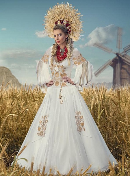Національний костюм, який покаже Ганна на конкурсі, складається з двох суконь. Перша — це корсет, друга — тонка сорочка в традиційному українському крої з широкими рукавами зі складками. Довга спідниця доповнена шлейфом, розповідає Таблоїд.