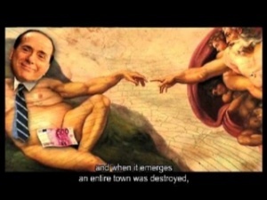 Зроблена в стилі журналістського розслідування, стрічка, що нагадує фільми відомого американського режисера Майкла Мура, була представлена в минулий четвер в рамках офіційної програми фестивалю в розділі спеціальних сеансів. Вона є сатирою на владу зруйнованого у квітні 2009 року землетрусом італійського міста Аквіли.