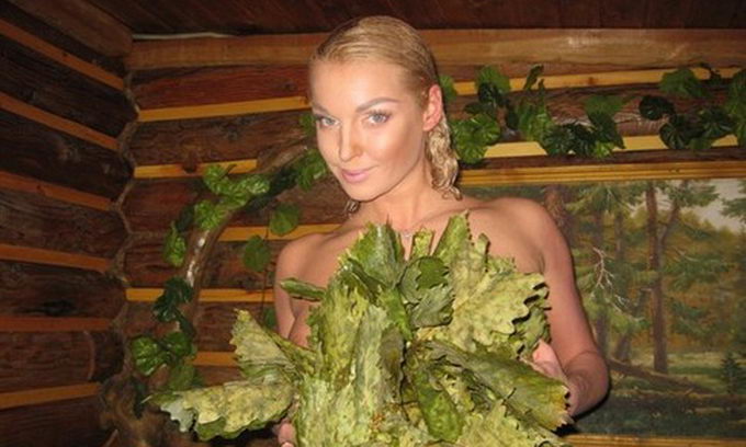 «Дорогі чоловіки, завтра ваше свято. Я поздоровляю вас! Бажаю найголовнішого — бути сміливими, як у помислах, так і у вчинках! І тільки для вас мій маленький, скромний сюрприз», — написала вчора Волочкова і виклала інтимні фотографії із сауни.