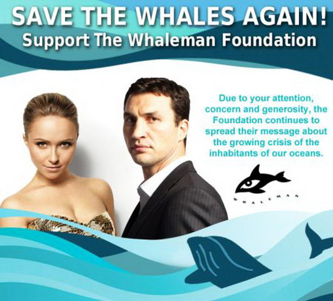 Боксер Володимир Кличко об’єднався зі своєю екс-подружкою актрисою Хейден Пенетьєрі. Втім, романтичних стосунків між ними начебто нема. Екс-коханці просто хочуть допомогти врятувати китів та дельфінів.