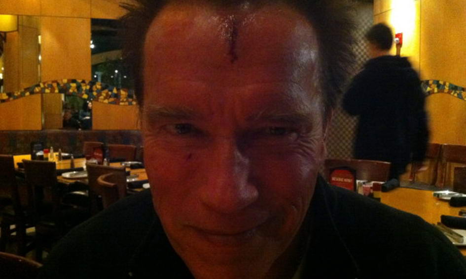 Голлівудський актор і екс-губернатор штату Каліфорнія Арнольд Шварценеггер розбив лоб під час зйомок фільму «Останній рубіж», що проходять у Альбукерку, штат Нью-Мексико. «Отримав невеликий забій сьогодні. Дякуємо медичному персоналу, дії якого дозволили вже через годину повернутися до зйомок», - написав Залізний Арні у своєму Twitter.