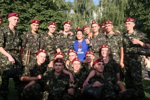 Чоловіча половина українських зірок в черговий раз довела, що може дивувати не лише своєю творчістю, але і спортивними талантами. У складі ФК "Маестро" артисти шоу-бізнесу розгромили з рахунком 2:0 фан-команду "Манчестер Юнайтед". Суперників "Маестро" не врятував ні посилений склад команди, ні ціла армія вболівальників-солдатів, що скандувала ім'я свого капітана. А ось капітан команди "зірок" - Фоззі, цього разу не вийшов на поле через травми, зате підтримував своїх колег морально впродовж всього матчу. Компанію йому склав друг і співведучий Педана Сергій Притула з дружиною. Їхній прихід виявився дуже доречним: саме в цей момент Педан відкрив рахунок матчу, а трохи пізніше актор Костянтин Косинський забив другий гол. На полі стадіону "Старт" грали також Віктор Павлік з підопічними артистами з групи "Павліки International" та Вадим Олійник. Не менш яскравим було і те, що відбувалось після самої гри. Близько двох сотень вболівальників "манчестера" у військовій формі заполонили футбольне поле, оточивши артистів, щоб зробити фото на пам'ять і взяти автографи. І це не дивлячись на те, що ще кілька хвилин тому, ФК "Маестро" був їхнім суперником. У якийсь момент солдати так щільно стиснули коло навкола телеведучого Олександра Педана, що здавалося, ніби його роздавлять. Але хлопці просто робили фото на пам'ять.