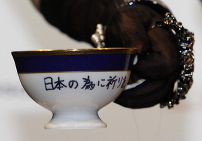 На чашці з написом японською «молюсь за Японію» залишилися сліди губної помади знаменитої співачки. Вона також залишила на чашці свій автограф, передає Корреспондент.