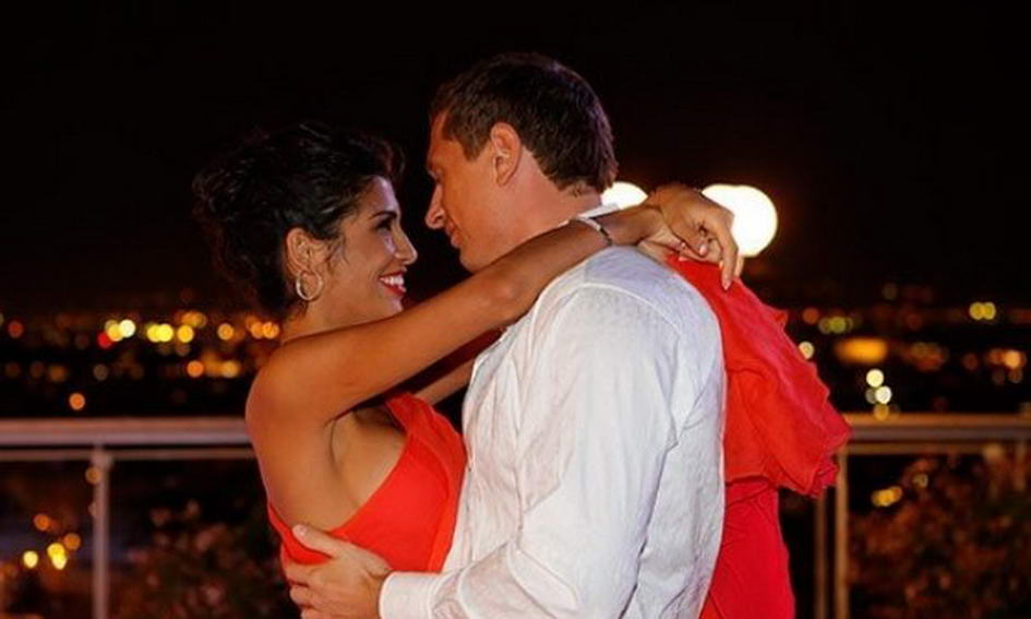 Серед гостей розкішної церемонії - родичі та численні друзі, зокрема інші учасниці гурту, де співає Санта. А от вчора на передвесільній вечері дівчата присутніми не були. Дійство відбувалося у ресторані на сьомому поверсі п'ятизіркового готелю Rome Cavalieri Waldorf Astoria. Вечеря на двох тут обійдеться щонайменше у 300 євро без алкоголю. На вході до зали був суворий фейс-контроль. Пригощали баранячими котлетками гриль. Наречена була одягнена у довгу червону сукню, охоче позувала для фотографій та спілкувалася з гостями.