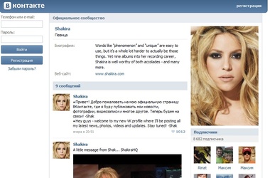 Співачка Шакіра завела акаунт у соціальній мережі «ВКонтакте», де вже розмістила відеозвернення до своїх шанувальників, кілька фотографій і відеокліпів.