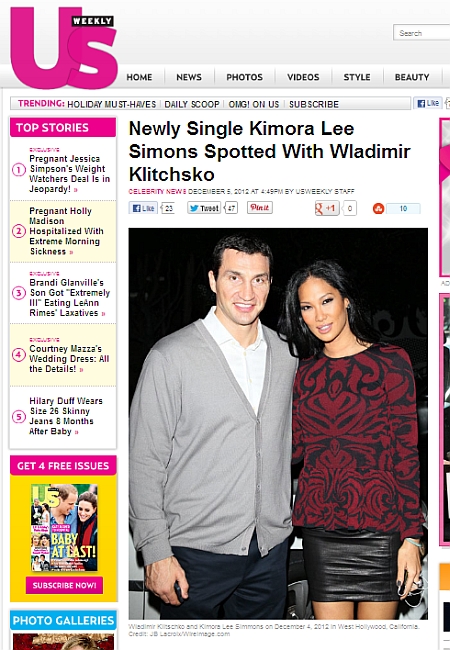 36-річний чемпіон світу з боксу Володимир Кличко днями вийшов у світ з 37-річною американською актрисою, фотомоделлю і дизайнером Кіморой Лі Сіммонс, повідомляє tabloid.pravda.com.ua. Після того, як Володя розійшовся з голлівудською актрисою Хейден Пенетьєррі, йому закидали багато романів. Втім, усі вони були лише чутками. Але днями боксера бачили разом з Кіморою Лі Сіммонс. Парочка з'явилася на презентації парфумів у Лос-Анджелесі та ніжно обіймалася, позуючи фотографам.