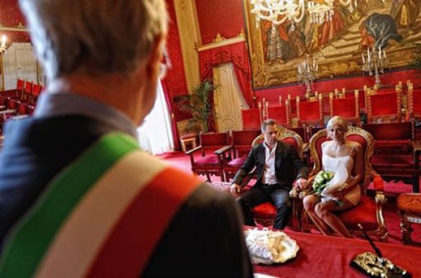 Віталій та Анна розписалися без родичів і свідків у Флоренції (Італія), а після прибуття до Москви скріпили шлюб в російському РАЦСі. "Не знаю, звідки було таке внутрішнє обопільне бажання. Ми з Анею одночасно зробили один одному пропозицію, ну і в цьому збіглися. Хотіли, щоб ця історія була тільки наша", - пояснив Віталій Гогунський, чому батьки не відразу дізналися про їхнє весілля.