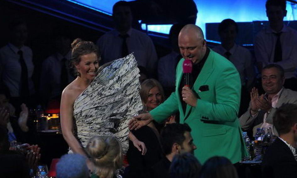 Після деякої перерви російську ведучу Ксенію Собчак запросили вести велике музичне шоу. Вона склала компанію на врученні премії RU.TV українському співаку Потапу. За задумом організаторів, Потап сам вибирав собі пару. Він пройшовся по глядацькому залу і, зупинившись перед Ксенією Собчак, вимовив: "Ксенія, не погодилися б ви провести зі мною премію?". Вона відповіла: "Ні-ко-ли".