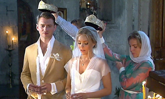 Клятви вірності Олена та Дмитро дали одне одному у старовинній церкві Святої Трійці біля підніжжя гори Казбек.