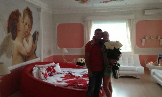 Уважні читачі блогу Волочкової помітили, що вони з бізнесменом вже раніше фотографувались у тому самому номері готелю з янголятами на стінах.