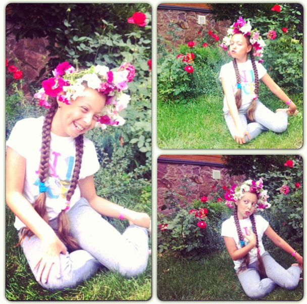 На фотографії Маша у величезному віночку позує мамі. Під час зйомки дівчинка відверто бешкетувала, жартувала. У міміці доньки шанувальники Полякової пізнали свого кумира.