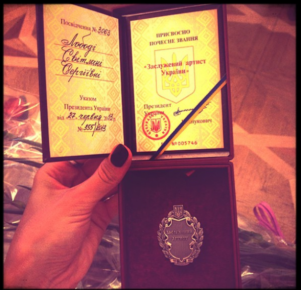 Світлана Лобода стала заслуженою артисткою України. Звання співачка отримала від глави Київської міської держадміністрації Олександра Попова.