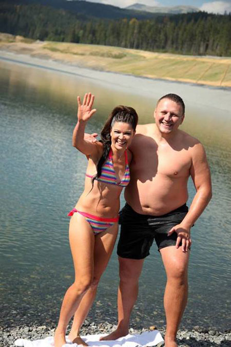 Серед гір артистка веде активний спосіб життя — з купанням в озері.