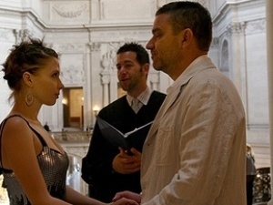 Церемонія одруження відбулася в Сан-Франциско. Наречена була одягнена в міні-сукні у стилі диско, а на руці красувалася обручка Tiffany. Молодята відзначали весілля вдвох у ресторані Френсіса Форда Копполи, де подають вино з власних виноградників кінорежисера.