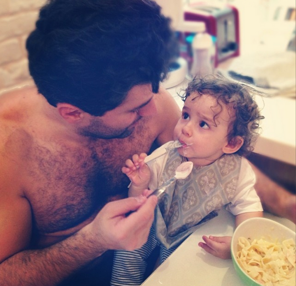 Анфіса похизувалася, що її син Соломон значно виріс. На фото видно, як хлопчик купається у ванній, а потім їсть на татусевих колінах макарони. Усі світлини сповнені домашнім теплом та затишком.