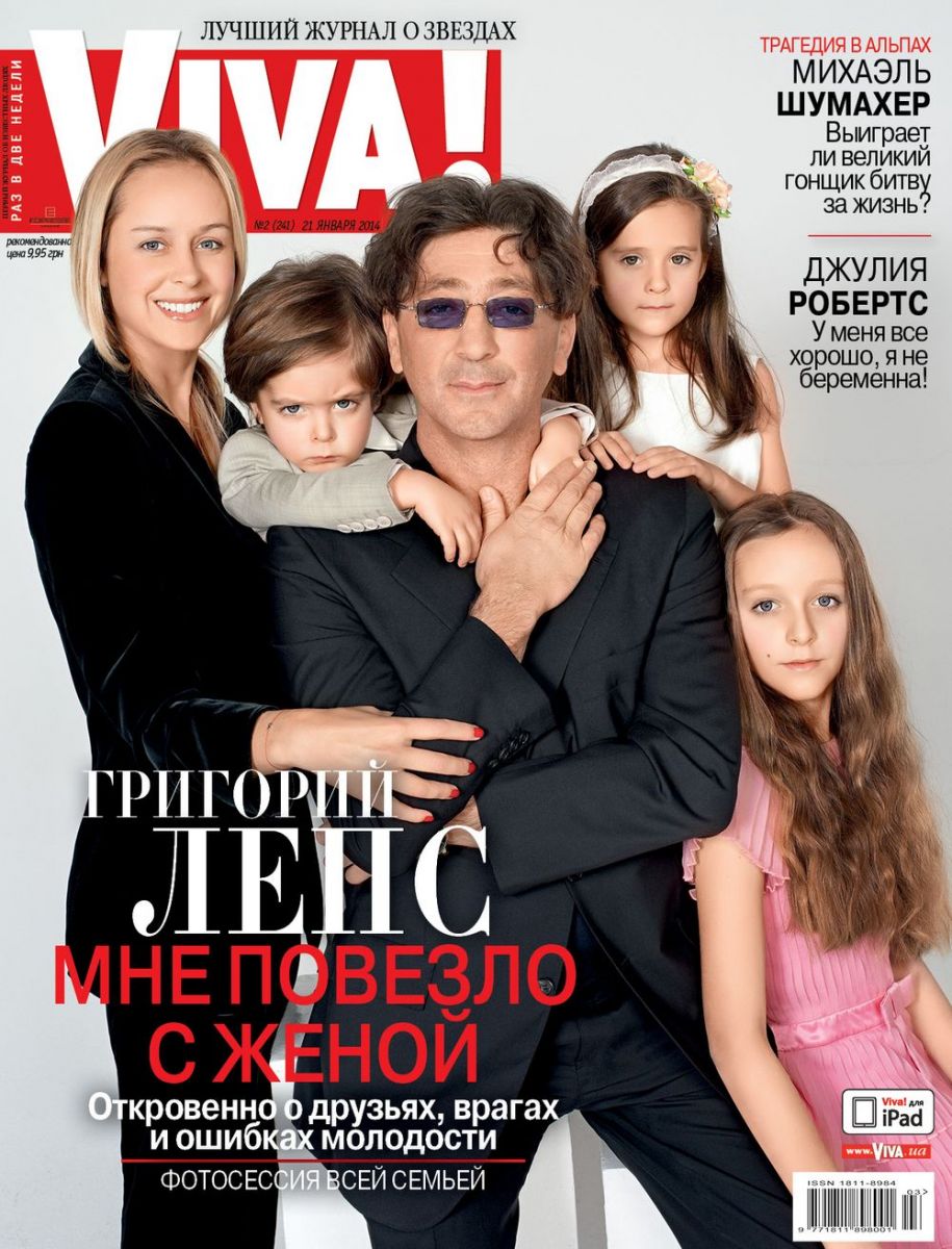 Відомий російський співак Григорій Лепс разом з сім'єю прикрасив обкладинку українського глянцю Viva.