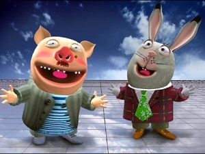 Комп'ютерні персонажі Хрюн і Степан були створені мультстудією «Пілот» Олександра Татарського. Вони були головними героями телепередач «Гасіть світло!» (2000-2003) і «Червона стріла» (2003-2004), що виходили на НТВ, ТВ6 і ТВС.