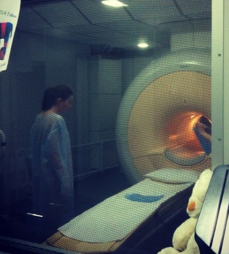 «Я дуже боюся закритого простору! Треба було бачити як лікарі мене вмовляли туди лягти! Лягла! І дізналася що тепер мені не можна ходити на підборах! Ну і фіг з ним! Теж мені любителька підборів)))» — написала Приходько.