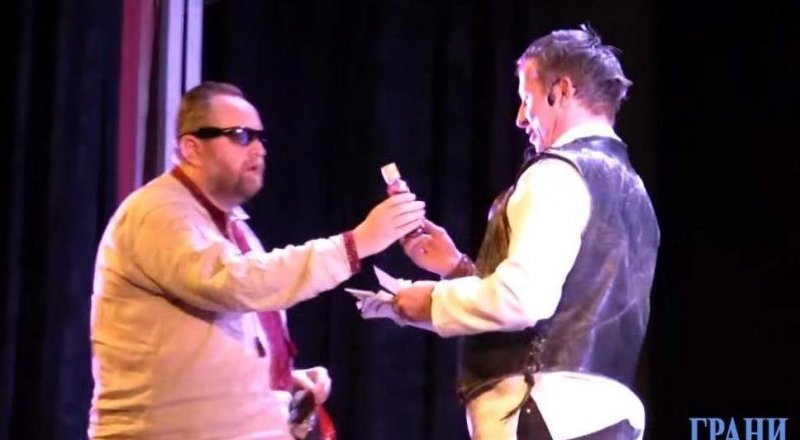Російському актору Івану Охлобистіну, який останнім часом активно бажає смерті українцям, вручили пляшку з кров’ю.