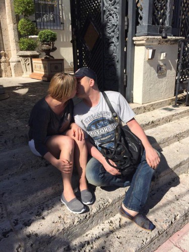 Андрій Данилко зображений на фото з Інною Білоконь, його сценічною колегою, яка стала відома завдяки ролі мами Вєрки Сердючки. Пара на фото демонструє свої теплі стосунки і мило цілується на вулиці сонячного Маямі.