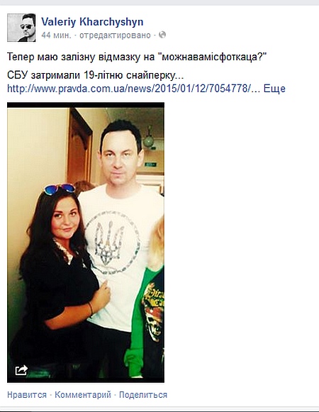 Харчишин сфотографувався із 19-річною снайперкою бойовиків