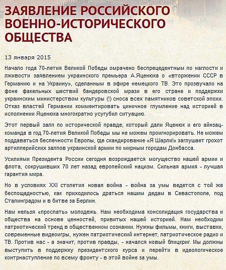 Російське військово-історичне товариство виступило з офіційною заявою, в якій запропонувало створити «патріотичний Інтернет».
