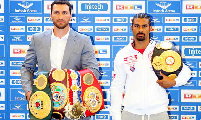 9 травня Володимир Кличко і Девід Хей провели першу офіційну прес-конференцію перед двобоєм 2 липня. Зустріч відбулася на місці майбутнього бою — на Imtech Arena у Гамбурзі.