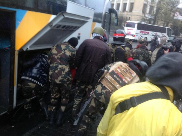У супроводі співробітників СБУ учасники Правого сектора виїхали на автобусі на одну із заміських баз.