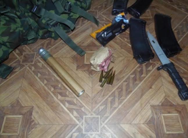 Крім того, при огляді у нього виявили 4 заповнені магазини, 2 пачки набоїв, сигнальну міну та штик-ніж. На місці затримання також знайшли патрон.