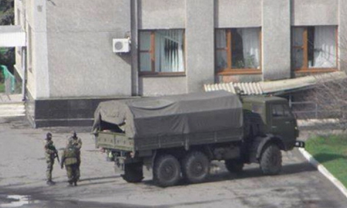 «Ввічливі зелені чоловічки» прибули в Слов'янськ з Криму, аби «забезпечити світле майбутнє городян». Про це заявили самі озброєні люди в уніформі, повідомляє Громадське.TV.