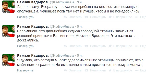 «Гаразд, скажу. Вчора група козаків прибула на південний схід на допомогу ополченцям. Чеченців поки там немає і краще, щоб і не знадобилися», – зазначив політик.