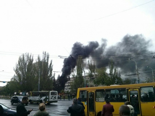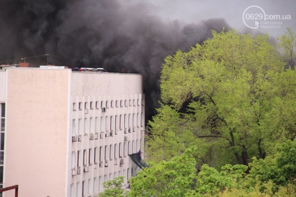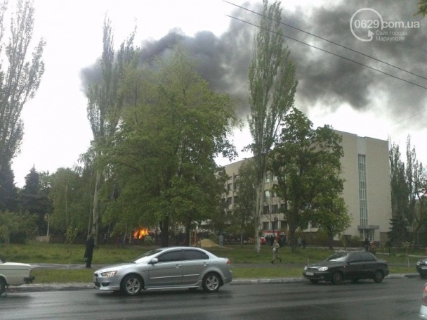 У ці хвилини відновилася боротьба за будівлю міської ради в Маріуполі на Донеччині. Сепаратисти підпалили шини на барикадах перед центральним входом. Над містом було видно величезний стовп чорного диму.