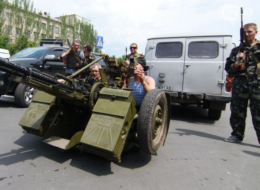 Озброєні бойовики прибули до захопленої будівлі ОДА на колоні вантажівок та військових БТР. Вони оточили захоплене приміщення та захопили кількох представників так званої Донецької народної республіки.