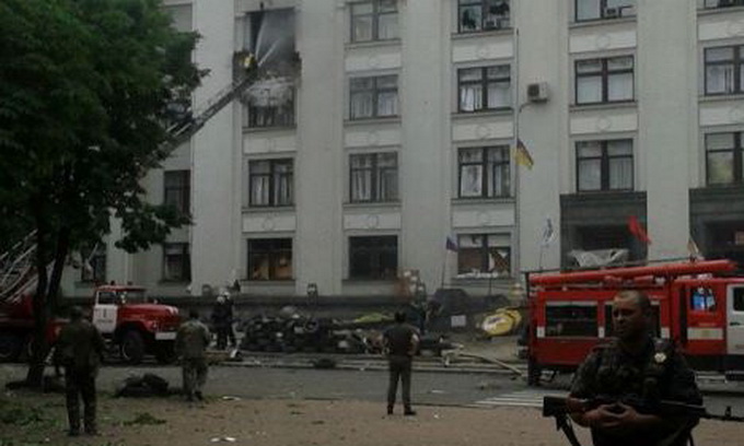 У Луганську ОДА потрапила ракета, випущена з будівлі УСБУ