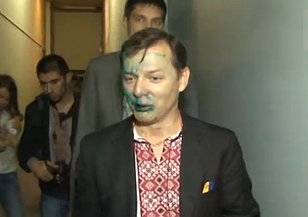 «А що ви тут робите?» — запитав депутат. У відповідь він нічого не почув. А вже перед самим входом до будівлі молодики підбігли і облили депутата зеленкою.