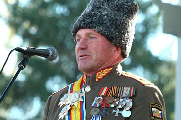 Відомо, що керовані російськими спецслужбами «козаки-бойовики» його соратника Миколи Козіцина, який представляється генералом армії козачих військ, тримали як живого щита в заручниках місію ОБСЄ, мінували дороги і мости, нападали на українських прикордонників, забезпечували коридори для поставок на Донбас із Росії зброї та найманців, скоювали злочини проти мирного населення.