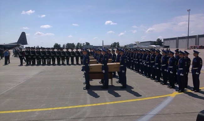 Почесна варта занесла труни до військового транспортного літака. Сьогодні частину тіл загиблих у катастрофі Боїнга-777 відправлять до Нідерландів.