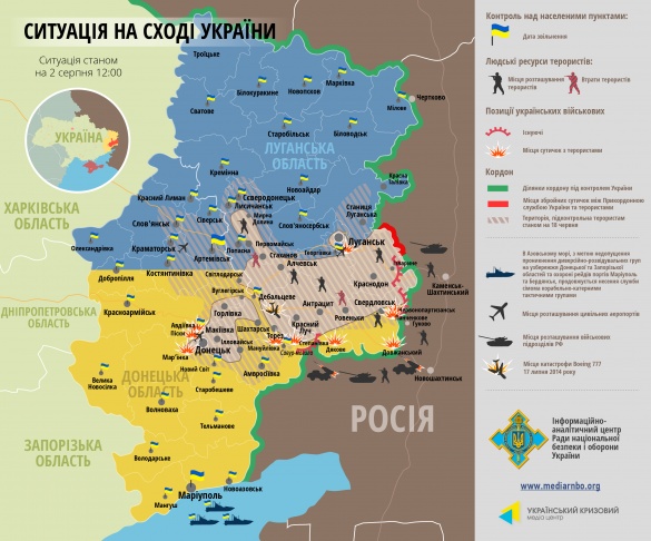 Крім того, прес-центр антитерористичної операції вчора опублікував оновлену мапу АТО — силовики продовжують стискати кільце навколо бойовиків і от-от увійдуть в Донецьк.